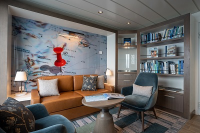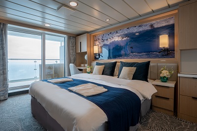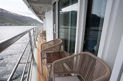 Réparties en 9 catégories, le navire propose 94 cabines au design nordique, modernes et fonctionnelles. 90 % d’entre elles disposent d’un balcon privé. La plus petite cabine est la cabine simple de 13 m², tandis que la plus grande est la suite de l’armateur, offrant jusqu’à 45 m² de confort.